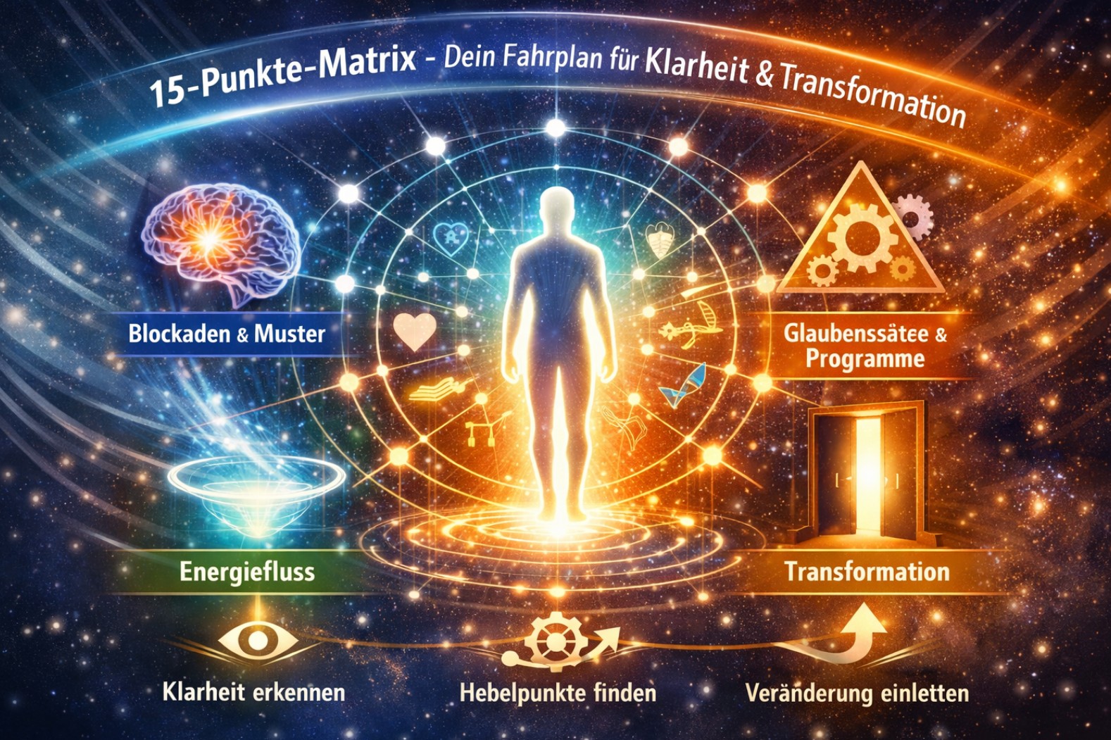 Die 15-Punkte-Matrix für bewusste Menschen ist ein strukturiertes Quantenanalyse-Tool, das verborgene Muster, innere Blockaden und unbewusste Entscheidungen sichtbar macht. Sie verbindet emotionale, mentale und energetische Ebenen zu einem klaren Gesamtbild deines aktuellen Zustands.